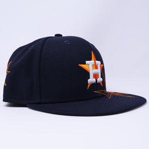 NWT 1/2 Black Houston Astros Fireworks Design 59fifty New Era Fitted Hat Cap