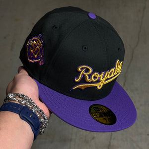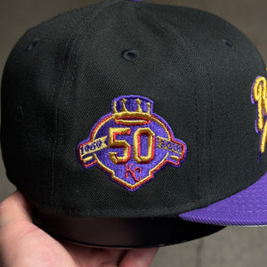 NWT 1/4 Black Kansas City Royals 50th Anniversary 59fifty New Era Fitted Hat Cap