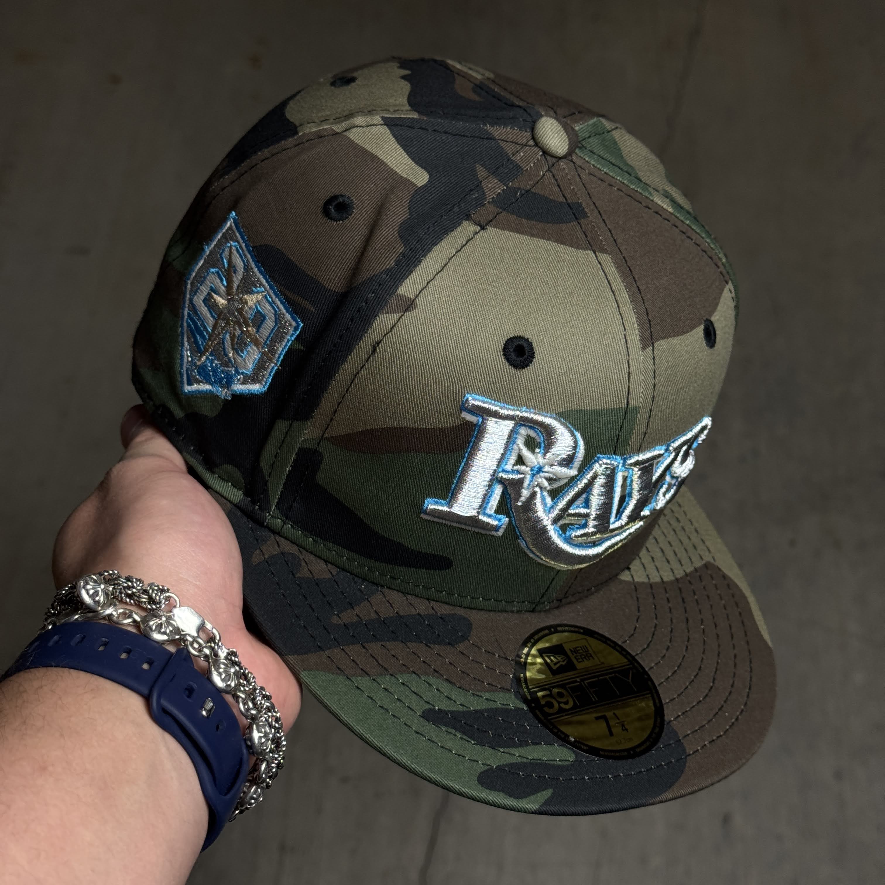 NWT 1/4 Camo Tampa Bay Devil Rays 20th Anniversary 59fifty New Era Fitted Hat Cap