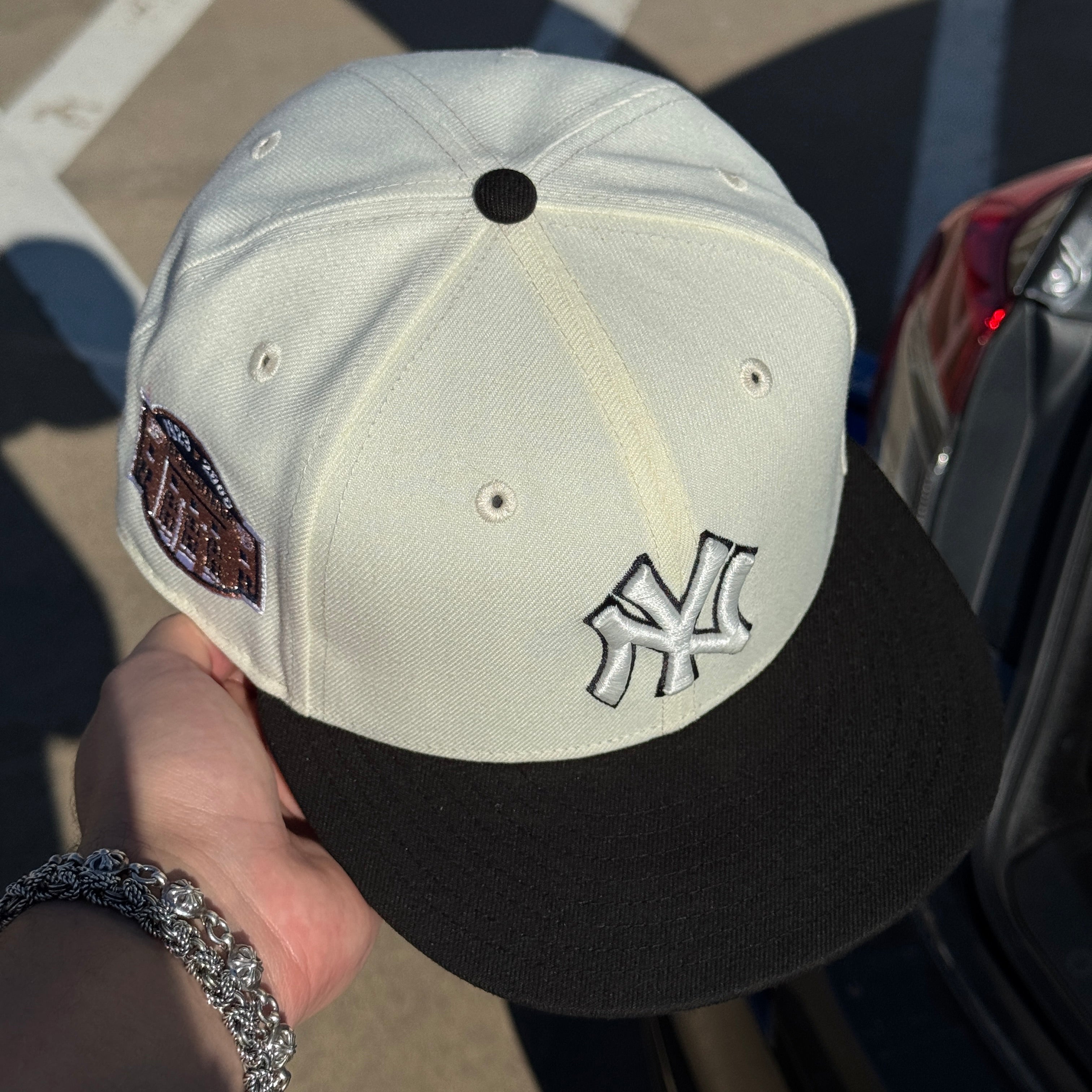 USED 1/2 Chrome New York Yankees Stadium 1923 59fifty New Era Fitted Hat Cap