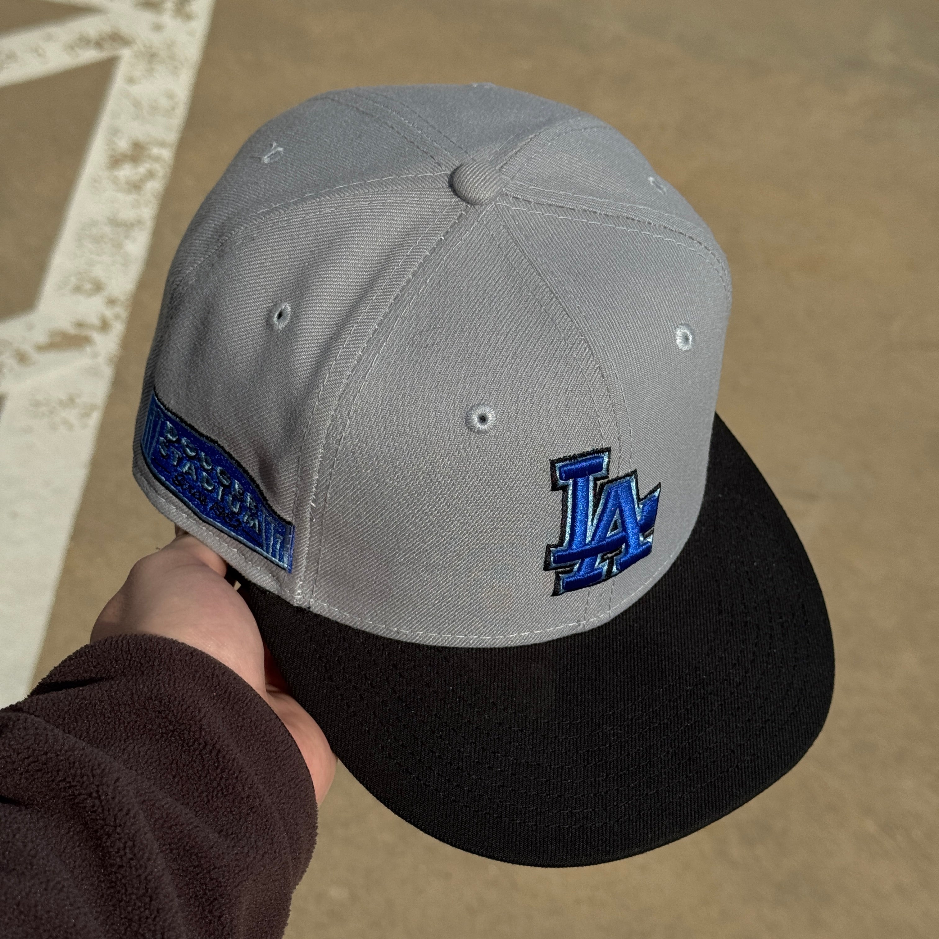 USED 1/2 Gray Los Angeles Dodgers Stadium 59fifty New Era Fitted Hat Cap
