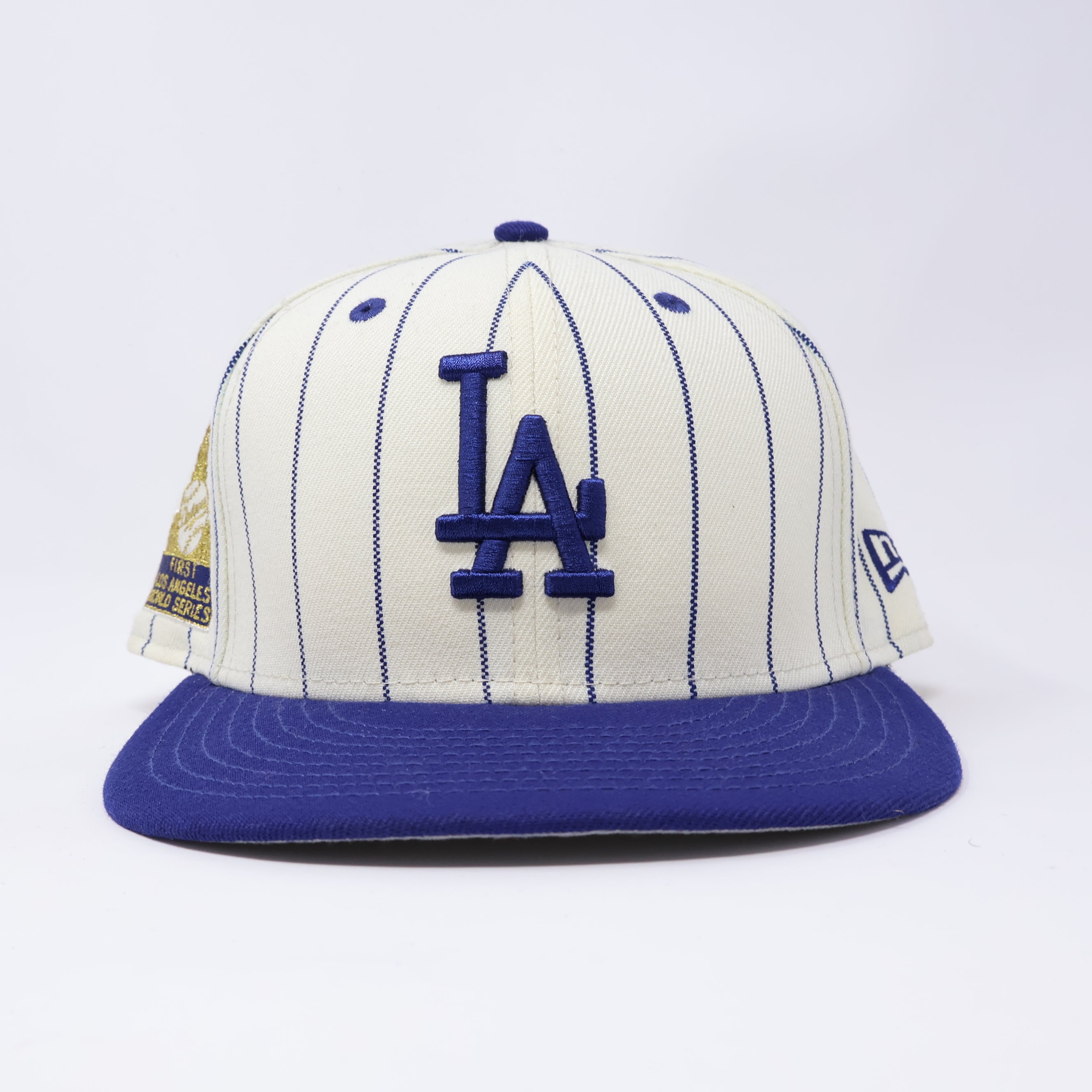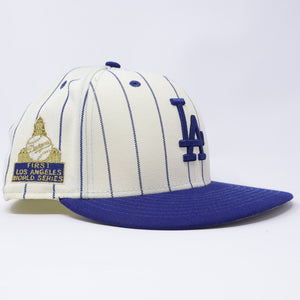 USED 1/2 Pinstripe Los Angeles Dodgers First World Series 59fifty New Era Fitted Hat Cap