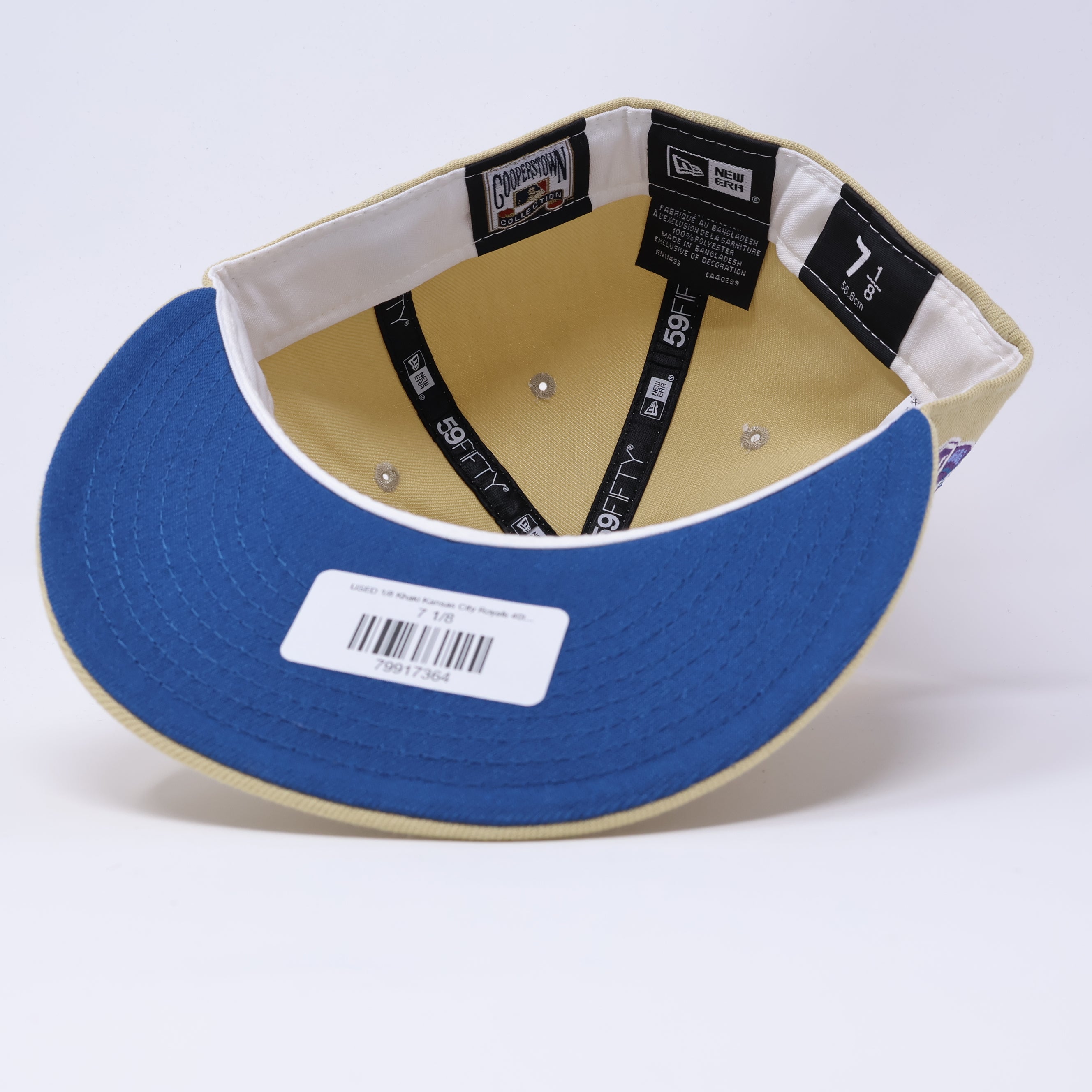 USED 1/8 Khaki Kansas City Royals 40th Anniversary 59fifty New Era Fitted Hat Cap