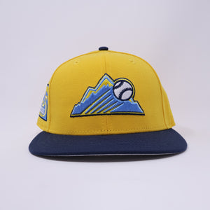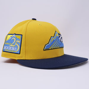 USED 1/8 Yellow Colorado Rockies 25th Anniversary 59fifty New Era Fitted Hat Cap