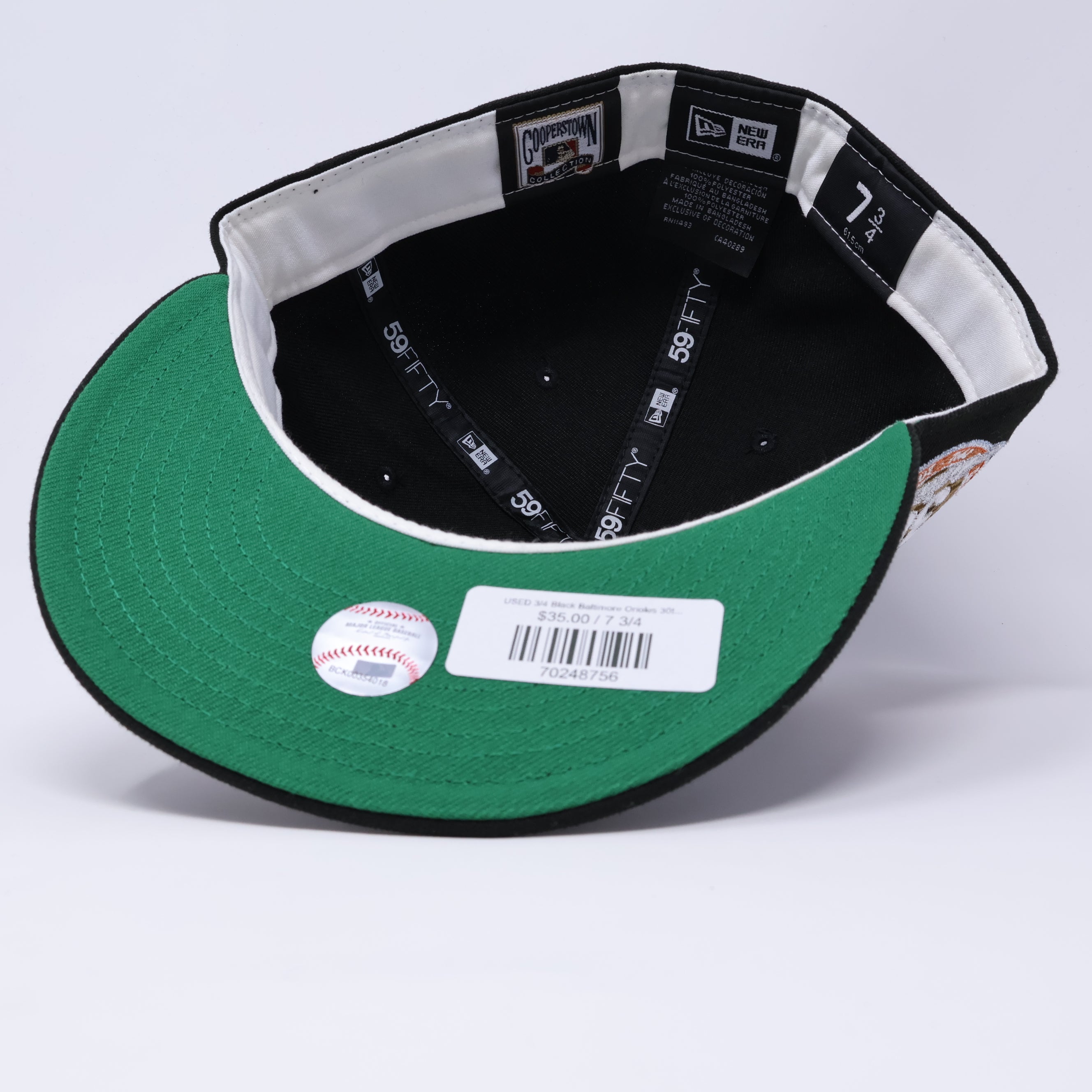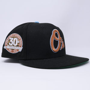 USED 3/4 Black Baltimore Orioles 30th Anniversary 59fifty New Era Fitted Hat Cap