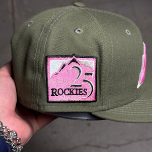 USED 3/4 Green Colorado Rockies 25th Anniversary 59fifty New Era Fitted Hat Cap