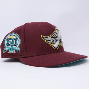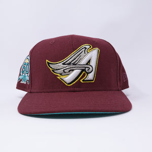 USED 3/4 Maroon Los Angeles Angels 50th Anniversary 59fifty New Era Fitted Hat Cap