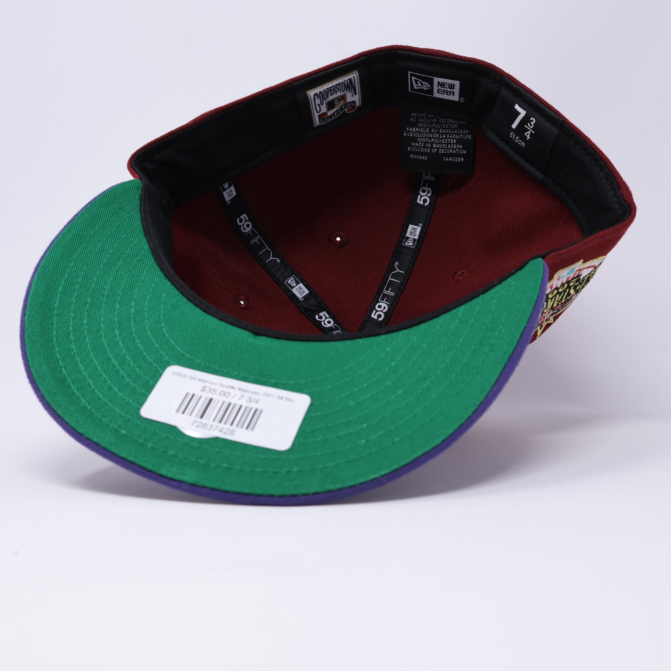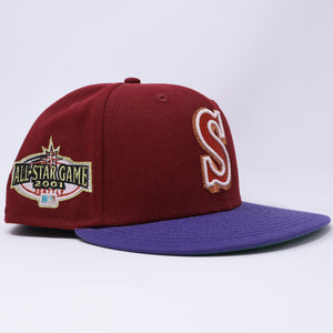 USED 3/4 Maroon Seattle Mariners 2001 All Star Game 59fifty New Era Fitted Hat Cap