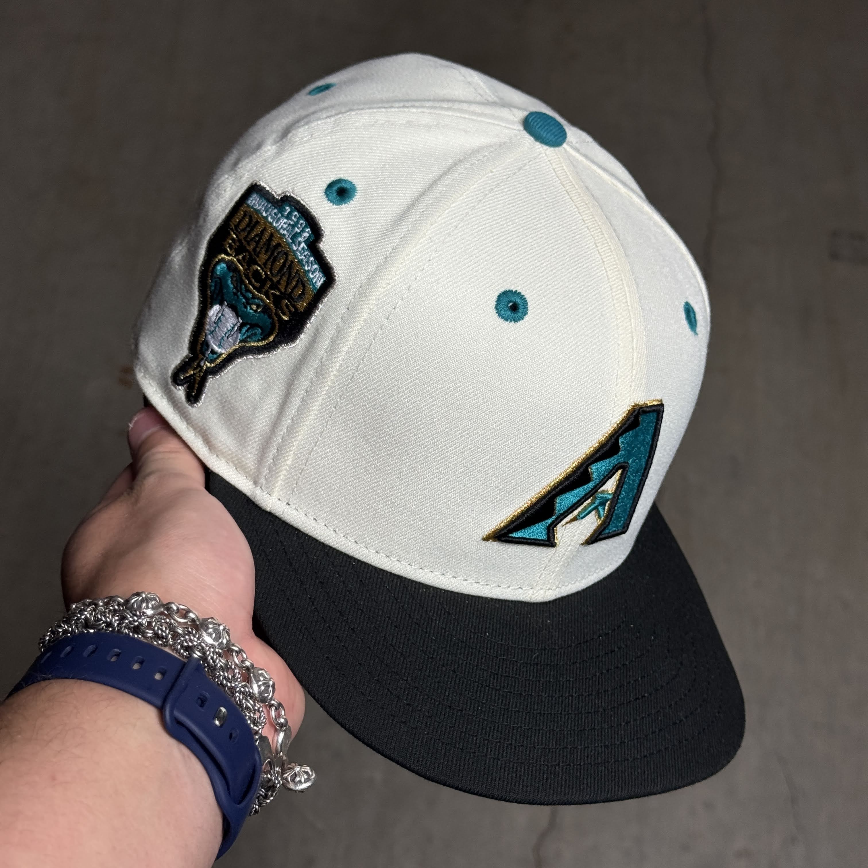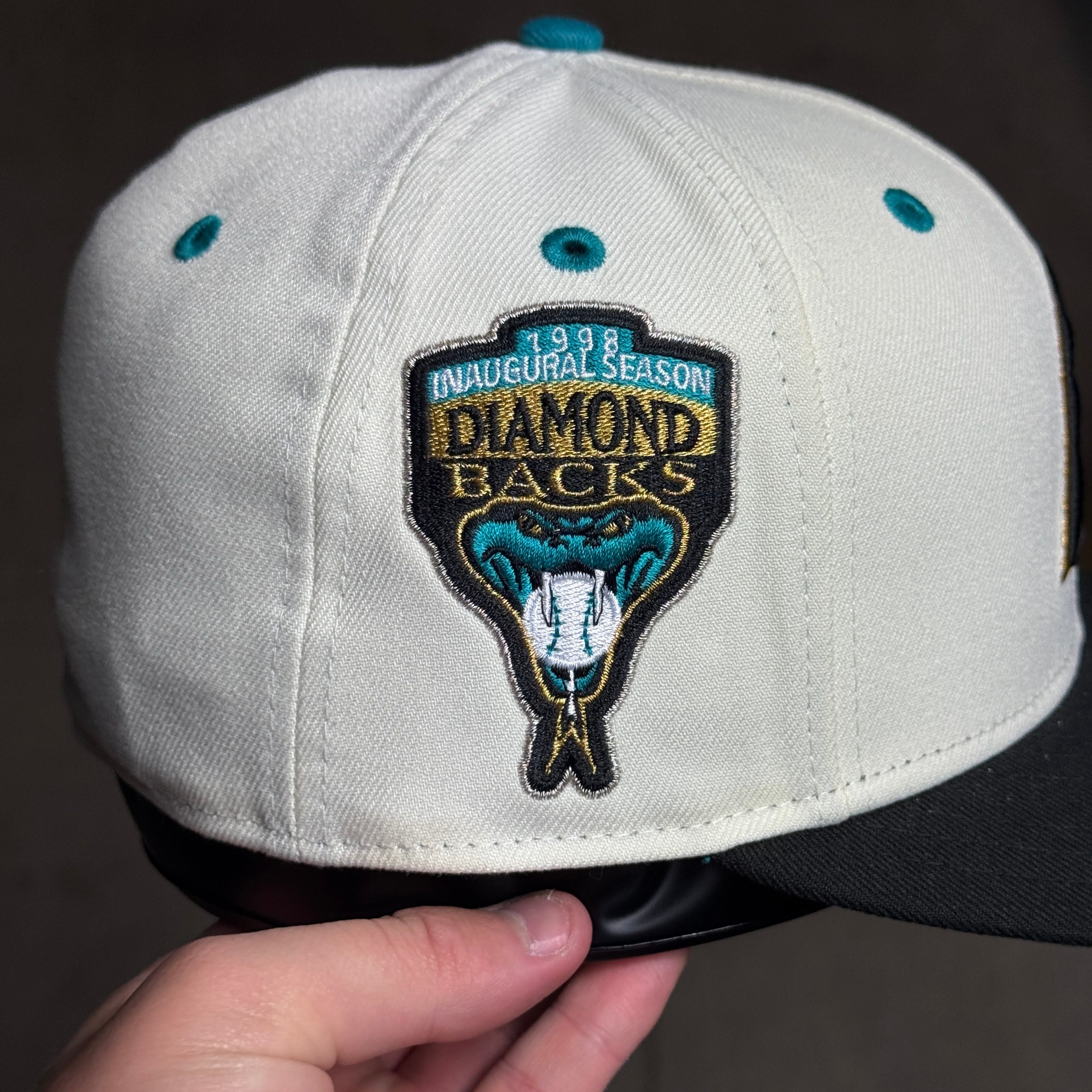 USED 3/8 Chrome Arizona Diamondbacks 1998 Inaugural 59fifty New Era Fitted Hat Cap