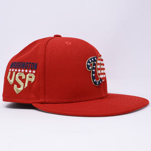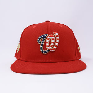 USED 3/8 Red Washington Nationals 4th of July 59fifty New Era Fitted Hat Cap