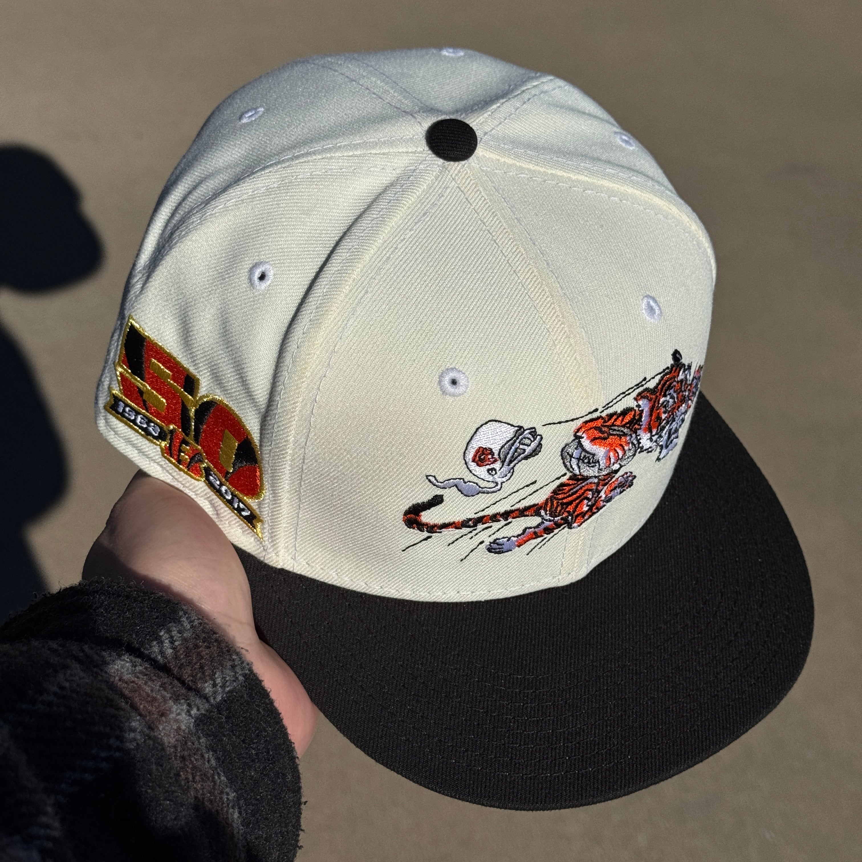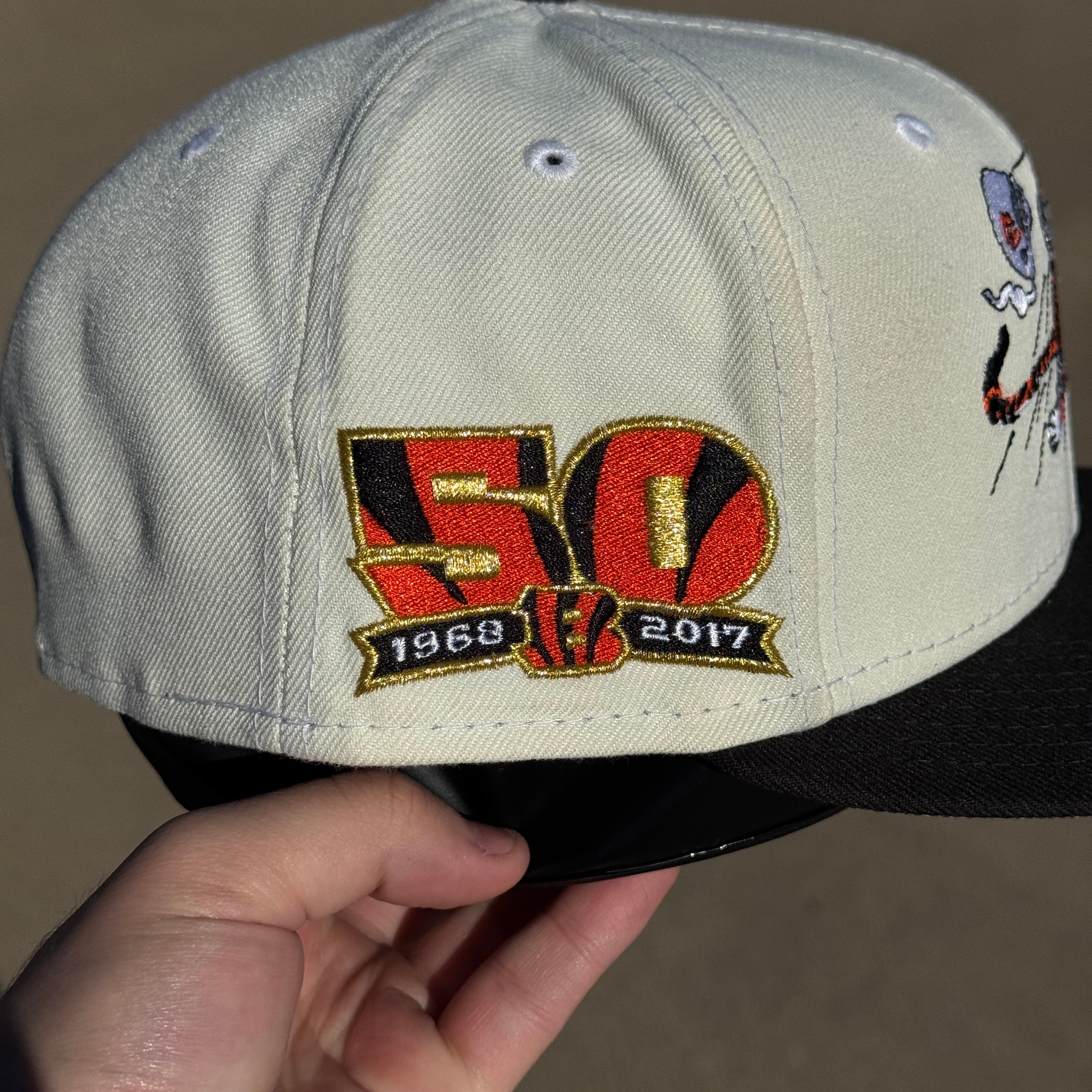 USED 5/8 Chrome Cincinnati Bengals 50th Anniversary 59fifty New Era Fitted Hat Cap
