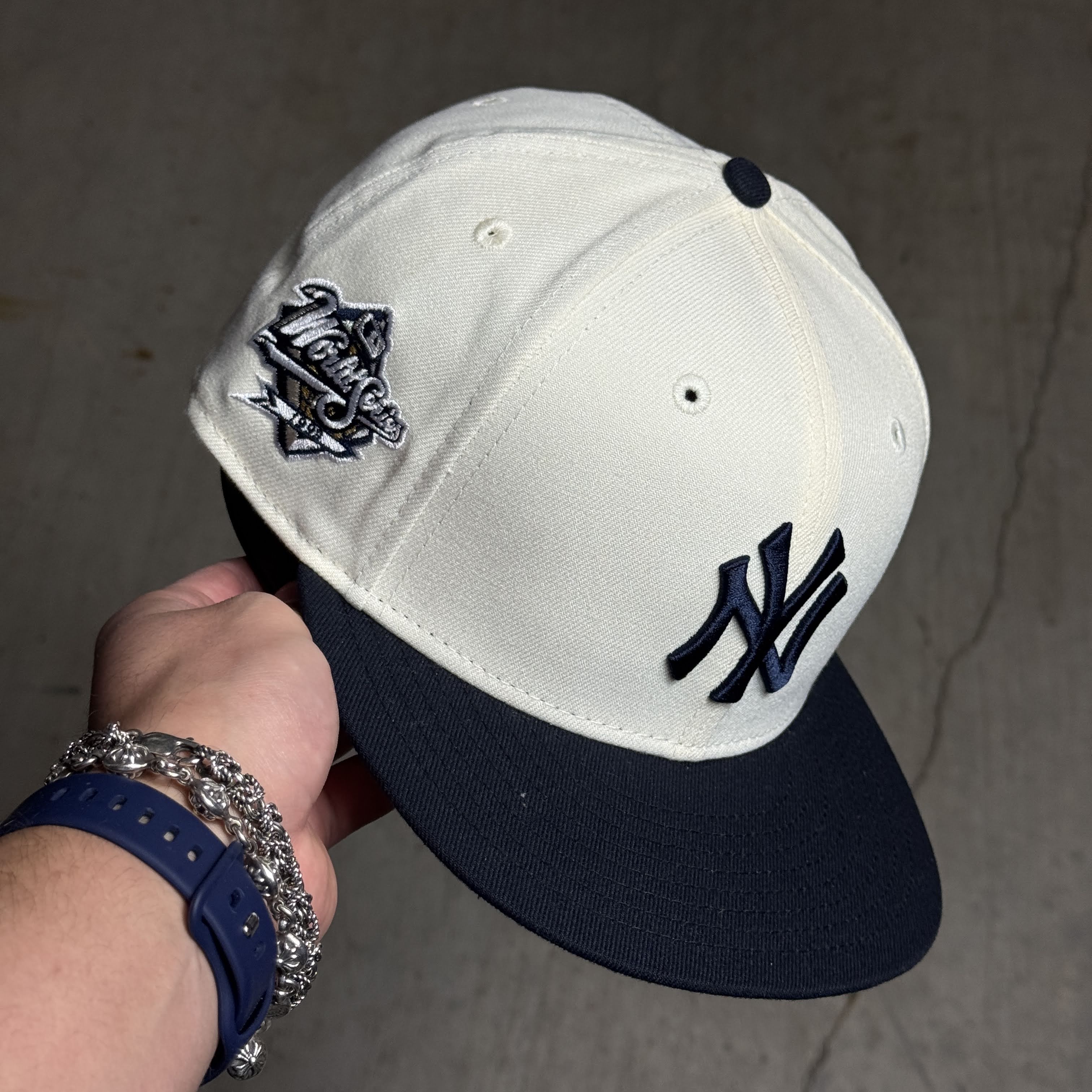 USED 5/8 Chrome New York Yankees 1999 World Series 59fifty New Era Fitted Hat Cap