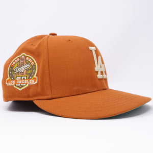 USED 5/8 Orange Los Angeles Dodgers 60th Anniversary 59fifty New Era Fitted Hat Cap