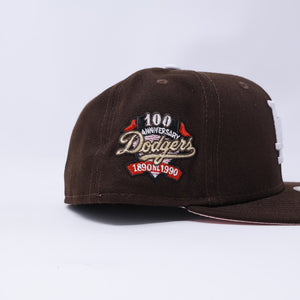 NWT 1/2 Brown Los Angeles Dodgers 100 Year Anniversary 59fifty New Era Fitted Hat Cap