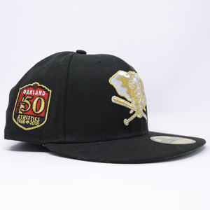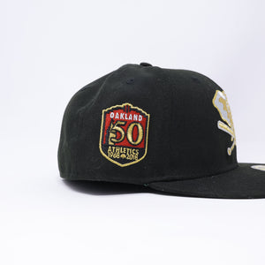 NWT 3/8 Black Oakland Athletics 50th Anniversary 59fifty New Era Fitted Hat Cap