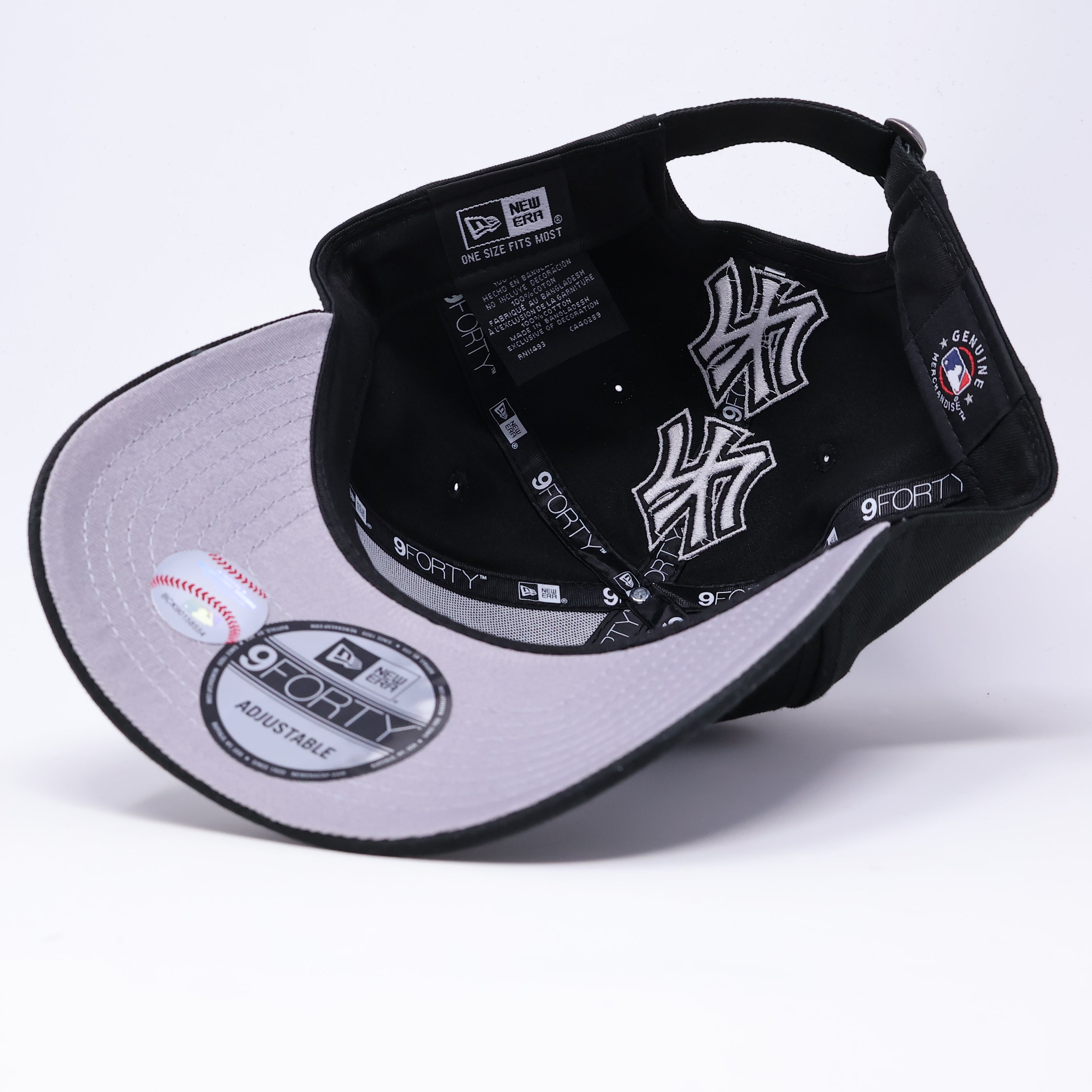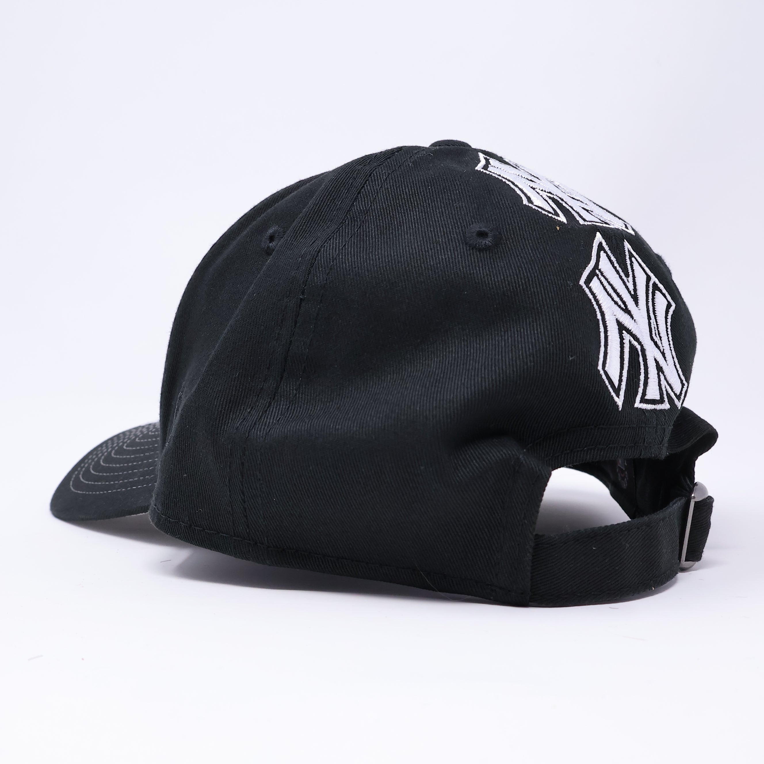 NWT Black New York Yankees Repeating Logo Spine 9Forty A-Frame New Era Adjustable Strapback Hat 5 Panel