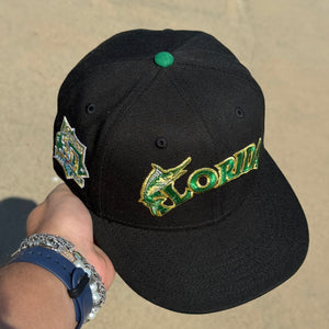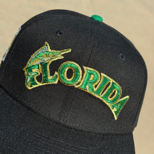 USED 1/4 Black Florida Marlins 30th Anniversary 59fifty New Era Fitted Hat Cap