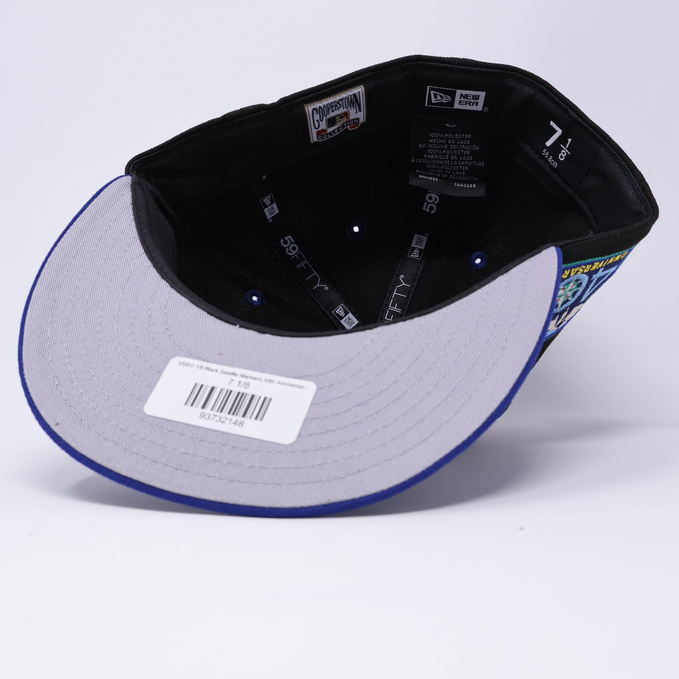 USED 1/8 Black Seattle Mariners 40th Anniversary 59fifty New Era Fitted Hat Cap
