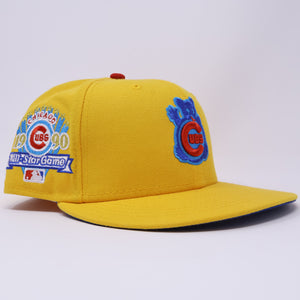 USED 1/8 Yellow Chicago Cubs 1990 All Star Game 59fifty New Era Fitted Hat Cap