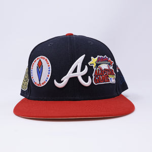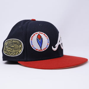 USED 3/8 Navy Atlanta Braves All Patches Logos 59fifty New Era Fitted Hat Cap