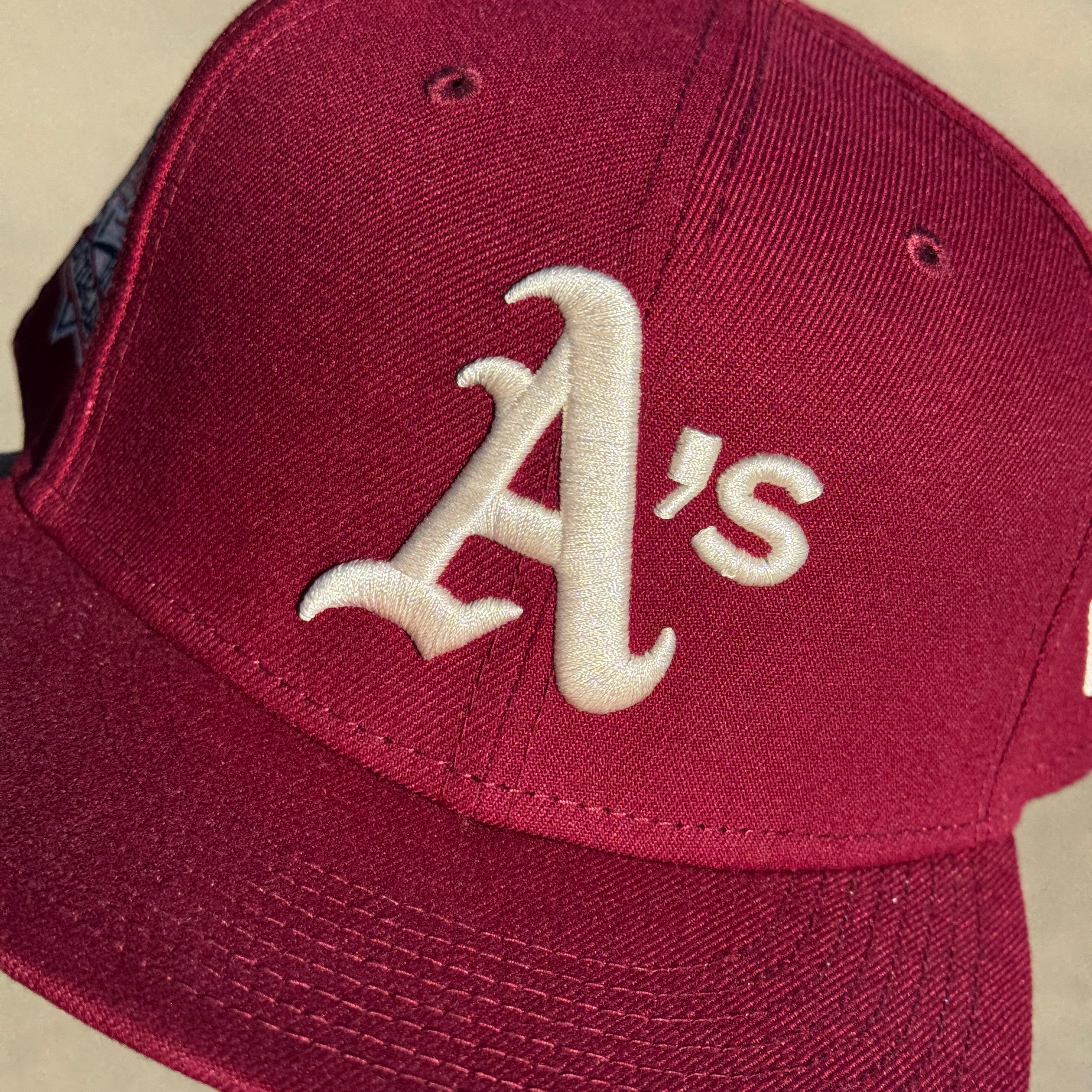USED 5/8 Maroon Oakland Athletics 1989 World Series 59fifty New Era Fitted Hat Cap